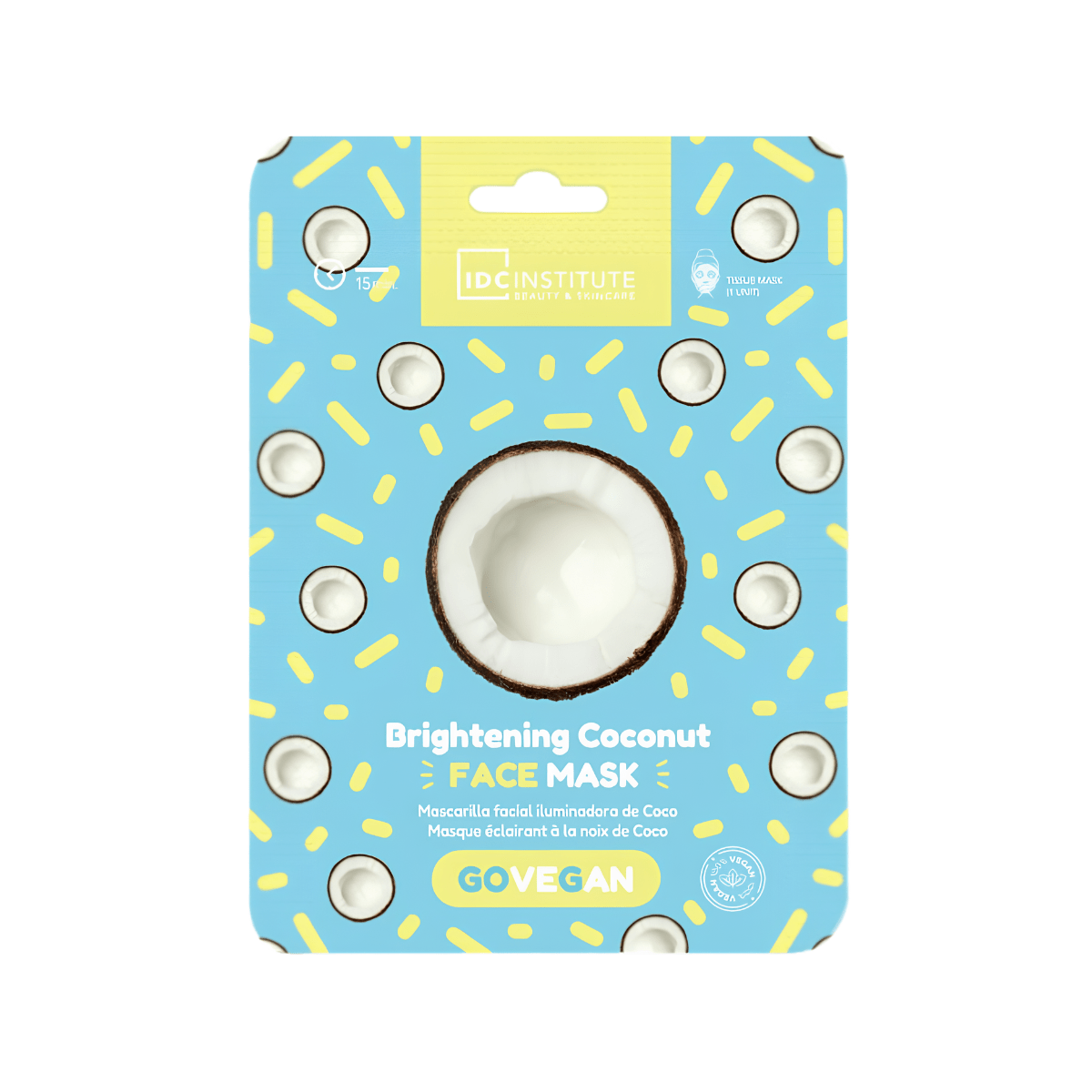La Coconut Oil Vegan Mask de IDC Institute es una mascarilla facial en tejido diseñada para aportar nutrición intensa y luminosidad a la piel.