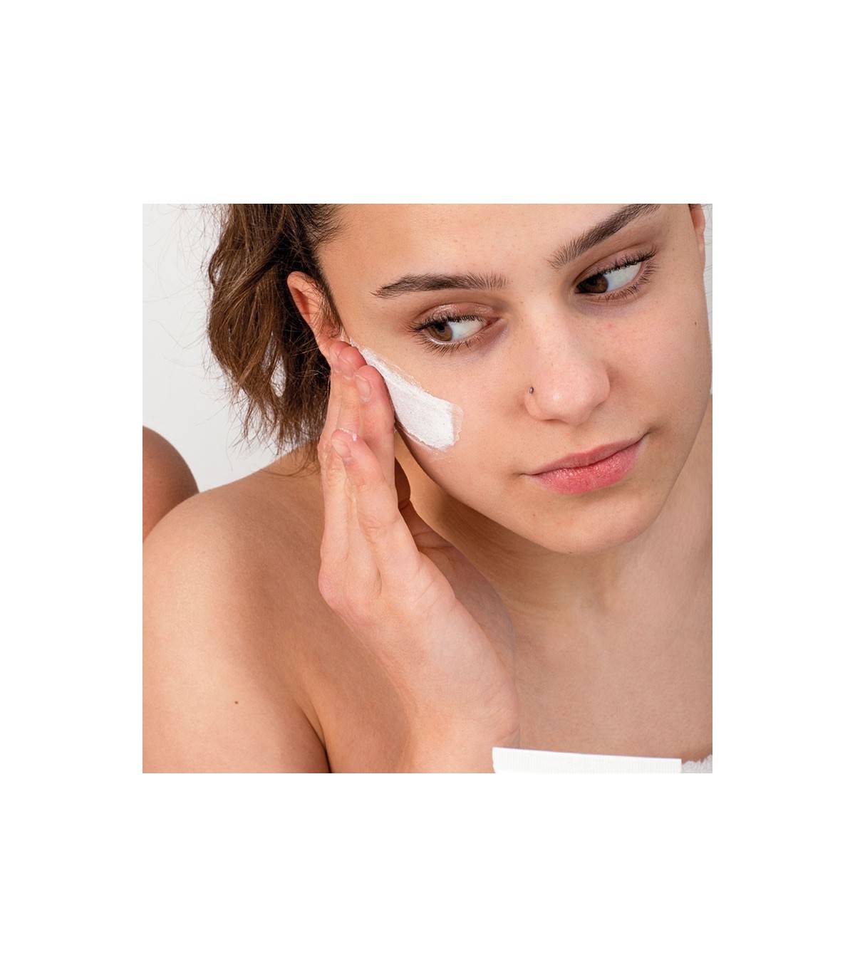 Exfoliante facial purificador con propiedades astringentes para pieles grasas y mixtas.